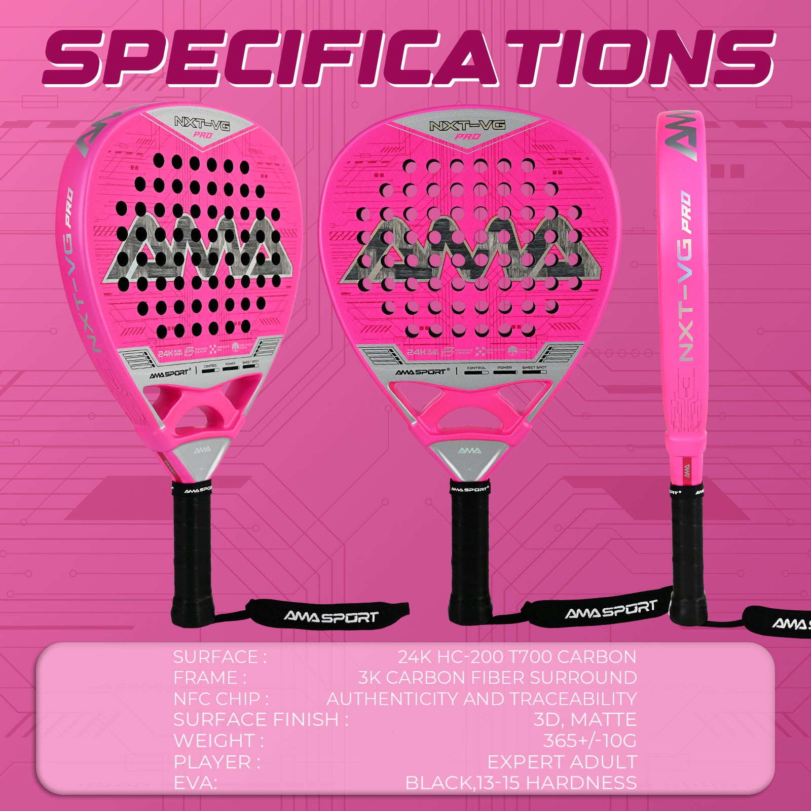 AMA Sport NXT-VG Pro Padel Racket 24K Carbon Diamond Shape Pink