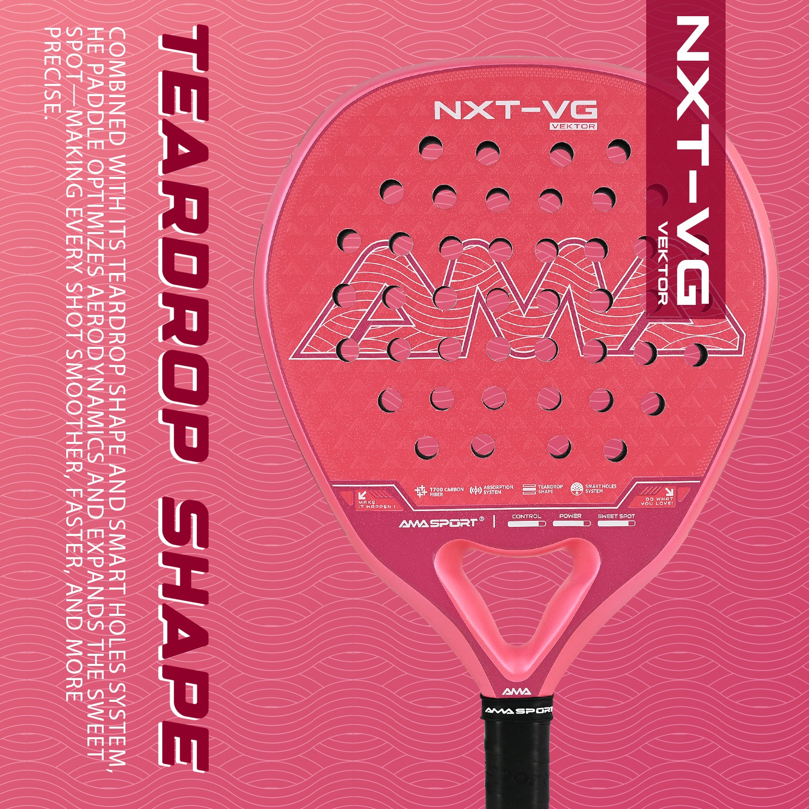 AMA Sport NXT-VG VEKTOR Padel Racket T700 Carbon Teardrop Shape Pink